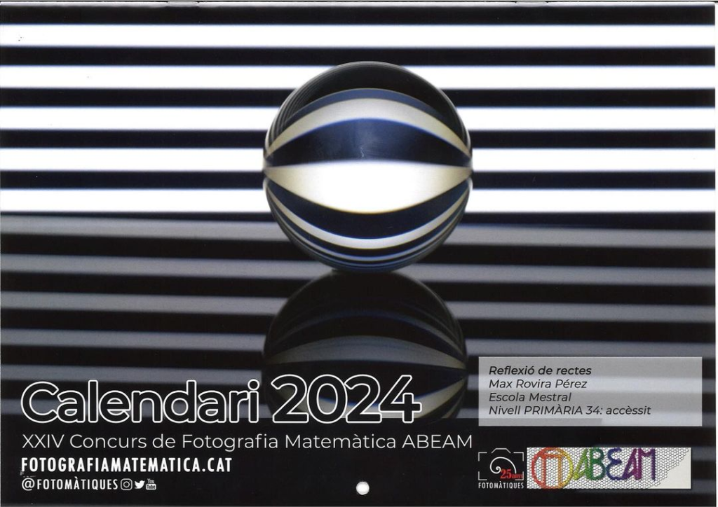 La fotografia matemàtica del Max de cinquè de primària ha estat seleccionada com a portada del Calendari del Concurs de Fotografia Matemàtica del proper 2024! Moltes felicitats, Max!